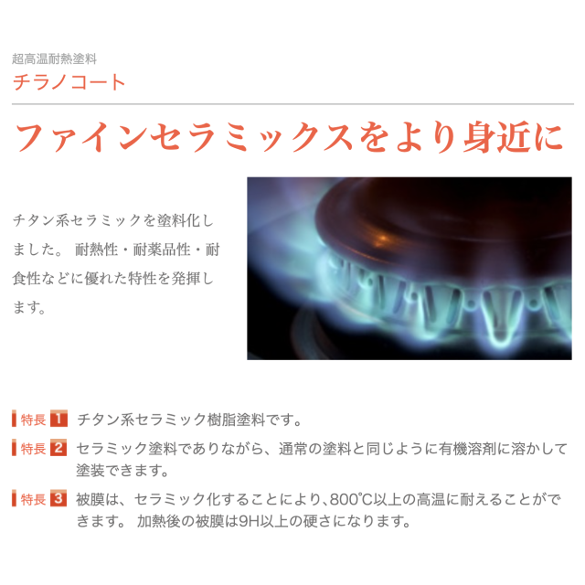 • ○チタン系セラミックス樹脂を使用した塗料で、600℃の高温に耐えることができる耐熱塗料です。