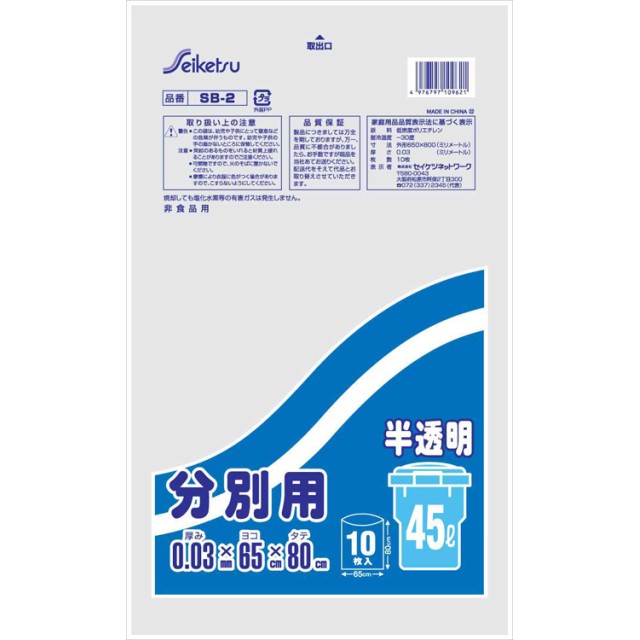 - 分別用45ℓ 半透明[SB-2]10枚入×60冊