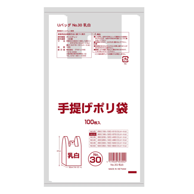 - 手提げ袋 30号 乳白[G-U30WN]100枚入×30冊