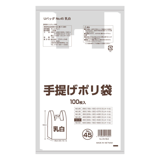• 手提げ袋 45号 乳白[G-U45WN]100枚入×15冊