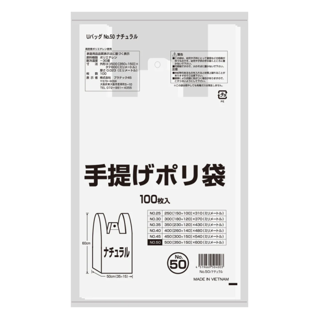 - 手提げ袋 50号 ナチュラル[G-U50N]100枚入×10冊